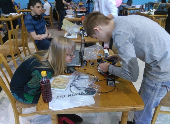 Количество участников оказалось больше, чем ожидали организаторы — около 70 человек от 7 до 17 лет. Спортивное соревнования проходили в шести категориях. Три из них, разделенные по возрастам — основная категория, и еще три — манипуляторы, лабиринты и роботы-сумо — в свободной категории.