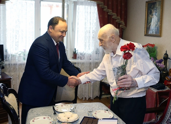 Так, сегодня, 4 мая, Игорь Пушкарёв побывал в гостях у участника Великой Отечественной войны Владимира Коновалова. Мэр поздравил фронтовика с 71-ой годовщиной Победы, пожелал крепкого здоровья и долгих лет жизни, а также вручил подарок.