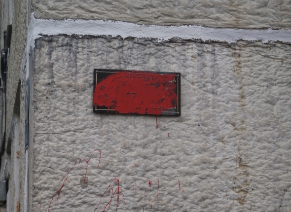 По ее словам, она с самого начала была против установки. Однако, кто закрасил табличку краской – не знает.