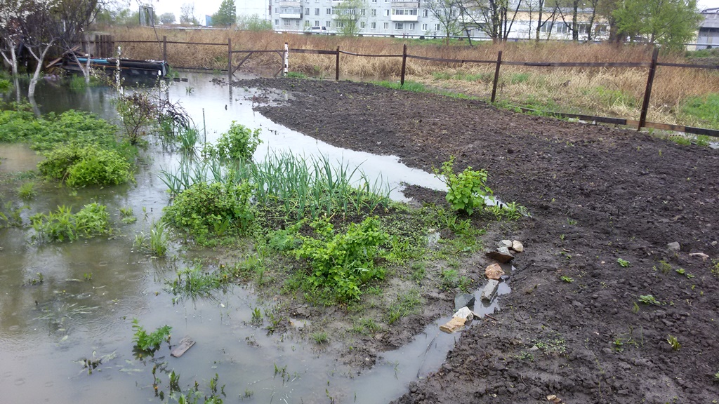 PrimaMedia, 17 мая 2016. Несколько приусадебных участков в Юго-Западном микрорайоне Лесозаводска затопило фекалиями из коллекторов, выводящих сточные воды из недавно построенных по соседству многоквартирных домов. Люди бьют тревогу, ведь под канализацией осталась посаженная картошка и другие овощи, сообщает РИА PrimaMedia.