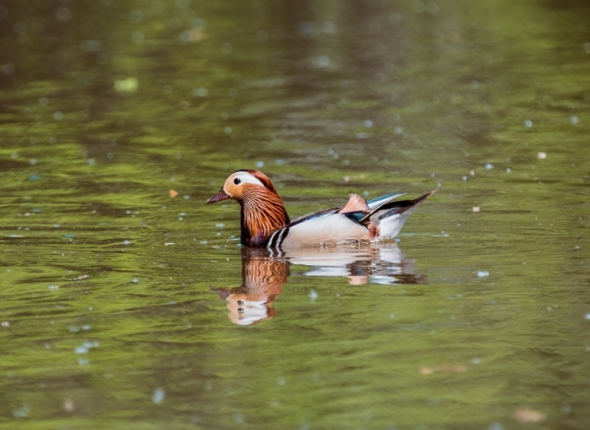 Справка: Мандаринка, или "японка" – это небольшая птица рода лесных уток семейства утиных. Мандаринками их прозвали за яркое оперенье, так как в Китае "мандаринами" именовали красиво одетых знатных вельмож. Брачный наряд самца мандаринки четко отличается среди других уток очень красочным цветом оперения. Самочки выглядят изящнее селезней, но у них в оперении отсутствуют яркие цвета.