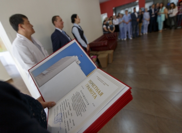 Награждение докторов медцентра ДВФУ почетными грамотами. Фото: Фото: РИА PrimaMedia