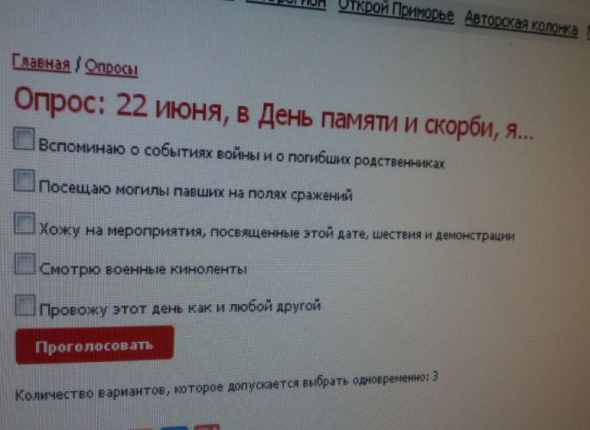 PrimaMedia, 21 июня 2016. Интернет-опрос ко Дню памяти и скорби стартовал на РИА PrimaMedia. В ходе него выяснится, что для читателей агентства значит дата 22 июня.