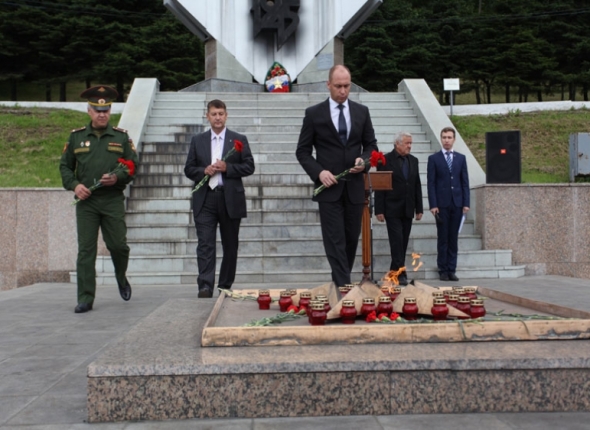 PrimaMedia, 23 июня 2016. Глава Находки Андрей Горелов с и.о. председателя городской Думы Евгением Ворониным 22 июня приняли участие в митинге у Вечного огня и возложили цветы к мемориалу в аллее воинских захоронений, сообщили РИА PrimaMedia в пресс-службе администрации Находки.