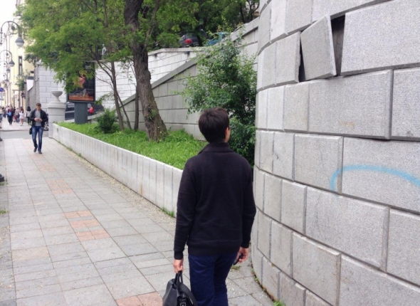 Плита крыльца "Серой лошади" во Владивостоке грозит упасть на головы прохожих