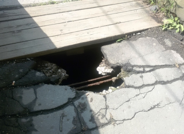 Жители и гости Владивостока, спускающиеся по лестнице в центре города, ежедневно рискуют провалиться под землю. В светлое время суток провалы хоть как-то можно перепрыгнуть, ну а поздним вечером, когда альтернативы в виде проезда на горном трамвайчике нет, приходится двигаться здесь на свой страх и риск.