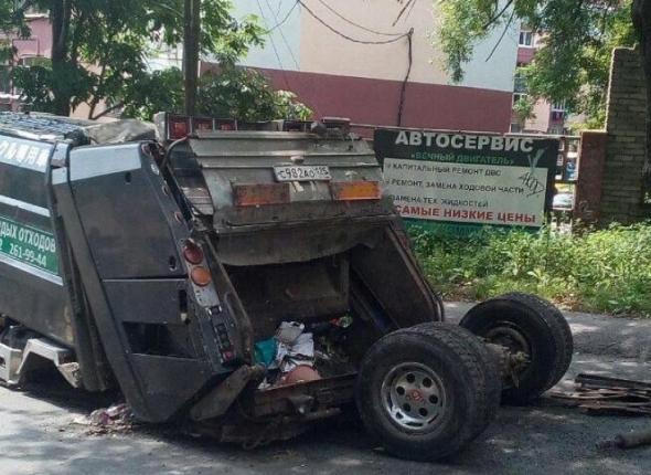 Мусоровоз потерял заднюю ось прямо на дороге на улице Минеров во Владивостоке, сообщил РИА PrimaMedia очевидец Эдуард Пасутский. В компании "Грин-Сити", чей телефон указан на бортах машины, прокомментировать аварию отказались.