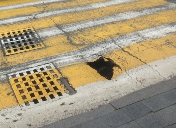 Кусок асфальта ушел под землю на пешеходном переходе на пересечении улиц Фонтанная и Алеутская во Владивостоке. Кроме того, трещины расползлись до половины дороги, а значит, есть вероятность, что в ближайшее время яма увеличится в разы. Ежедневно тысячи автомобилистов и пешеходов рискуют угодить в провал посреди проезжей части. Как рассказали корр. РИА PrimaMedia в управлении дорог и благоустройства администрации города, сегодня специалисты обследуют яму и в ближайшее время займутся восстановлением дорожного покрытия.