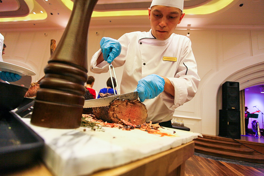 Шеф-повар казино угощал гостей изысканными блюдами из мяса и рыбы, а также десертами ручной работы.