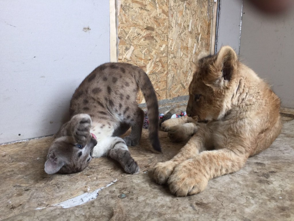 Африканский лев Аристо преподал "уроки жизни" новому жильцу зоопарка "Чудесный" под Уссурийском. Маленький горный лев, названный в честь спонсоров Принц Фору, повторяет все, что делает его старший товарищ – он уже не боится, ласкается и дается на ручки своей "маме", сообщает корр. ИА UssurMedia.