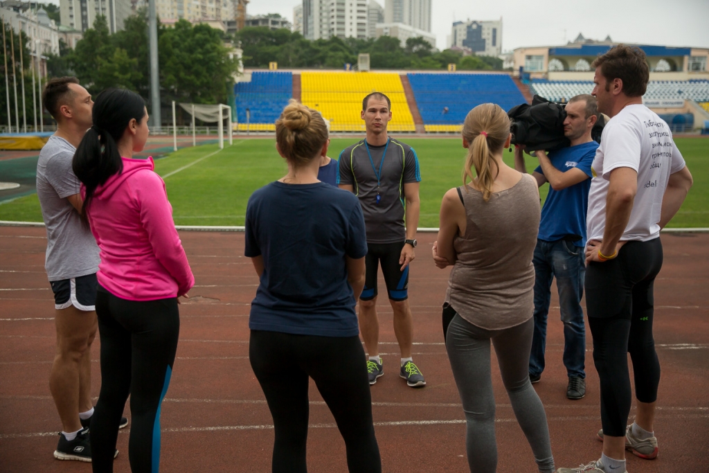 Грандиозное спортивное событие — первый международный Владивостокский марафон, маршрут которого пройдет по острову Русскому, двум мостам и завершится в центре Владивостока – состоится 24 сентября. Организаторы марафона объявили о наборе команд, которые мечтают преодолеть легендарные 42,2 км в формате экиден. И первыми, кто принял вызов, стали представители приморских СМИ. Журналисты и медийные личности встретились на стадионе "Динамо" в беговом клубе RunDNSRun и провели первую тренировку под проливным дождем, сообщает РИА PrimaMedia.