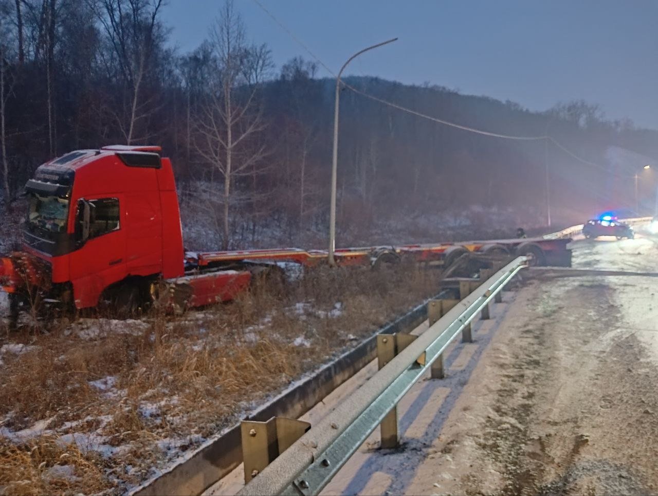 Фура пробила леер в ДТП с легковушкой во Владивостоке — один из водителей госпитализирован