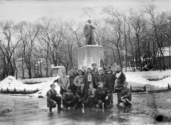 Вахта у памятника В. И. Ленину в горпарке в 1989 году. На этом месте сейчас стоит Покровский собор