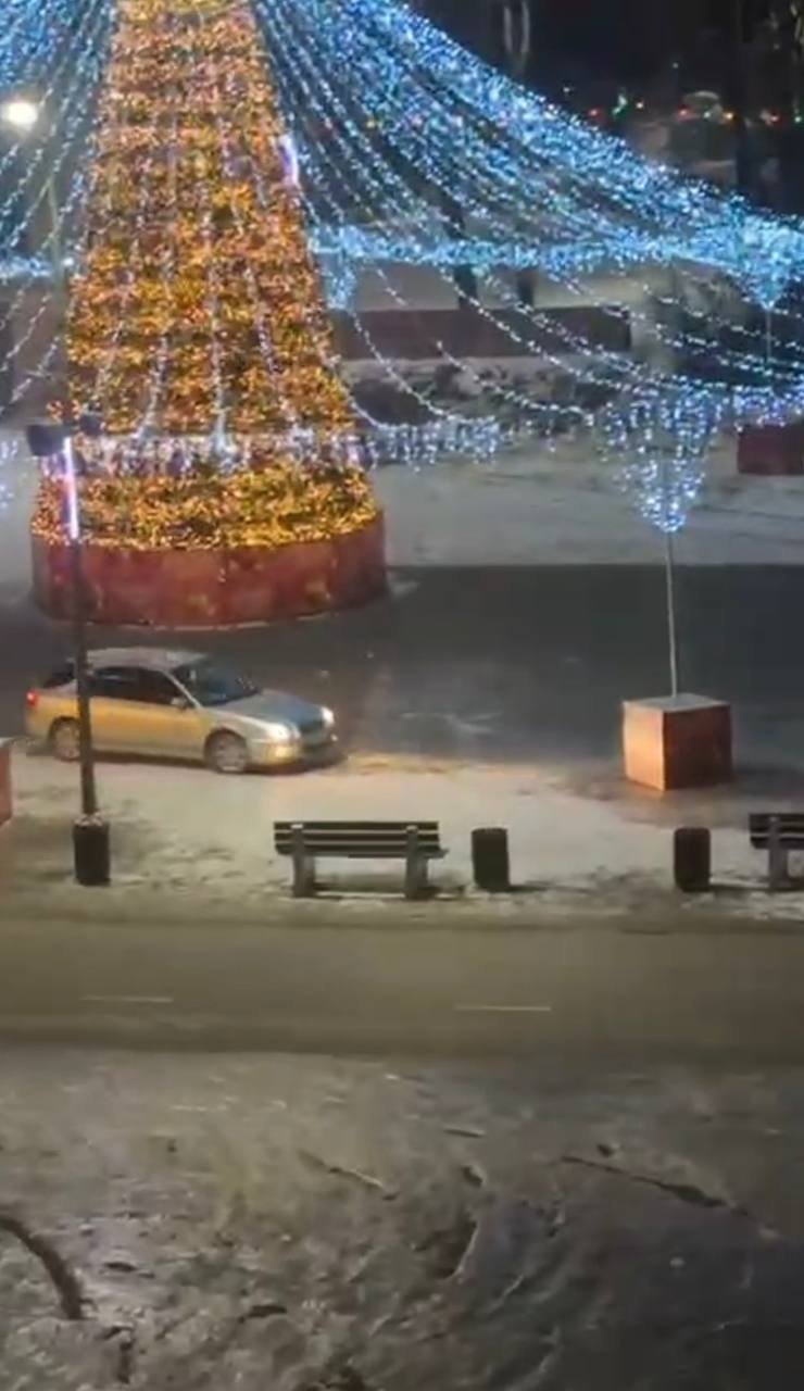 22 декабря, 21:40 В Партизанске ищут водителя, устроившего дрифт вокруг новогодней ёлки и сбившего декорацию